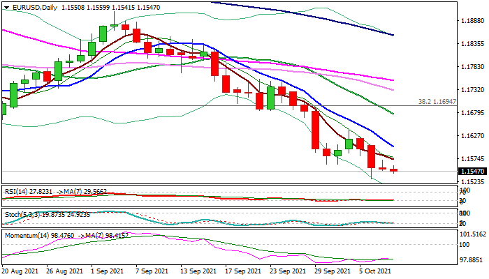 Falling 10DMA (1.1602) marks pivotal barrier, with sustained break here to sideline immediate bears, while lift and close above 1.1675 (falling 20DMA/Fibo 38.2% of 1.1909/1.1529) would signal reversal in the scenario which could be triggered by strong NFP miss.