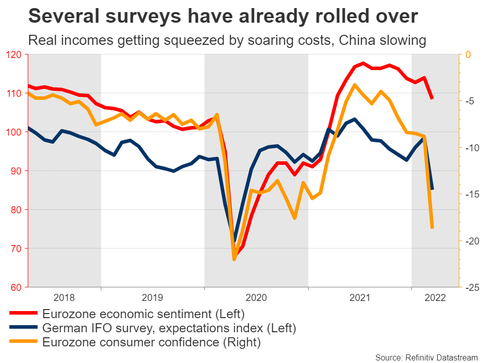 Then there’s the slowdown in China to consider. With major Chinese cities going into lockdown, demand for European exports has started to fade, dealing a second blow to the economy.